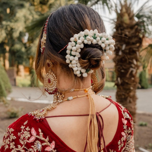 Enhance your hairstyle with our beautiful Indian hair accessories. Whether you choose a floral ...hair gajra, a fragrant jasmine band, a delicate sahare, a traditional punjabi parandi or a regal sheeshpool, our collection promises to add elegance and charm to your look.