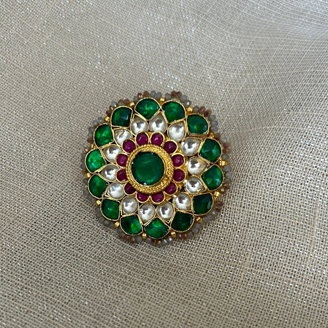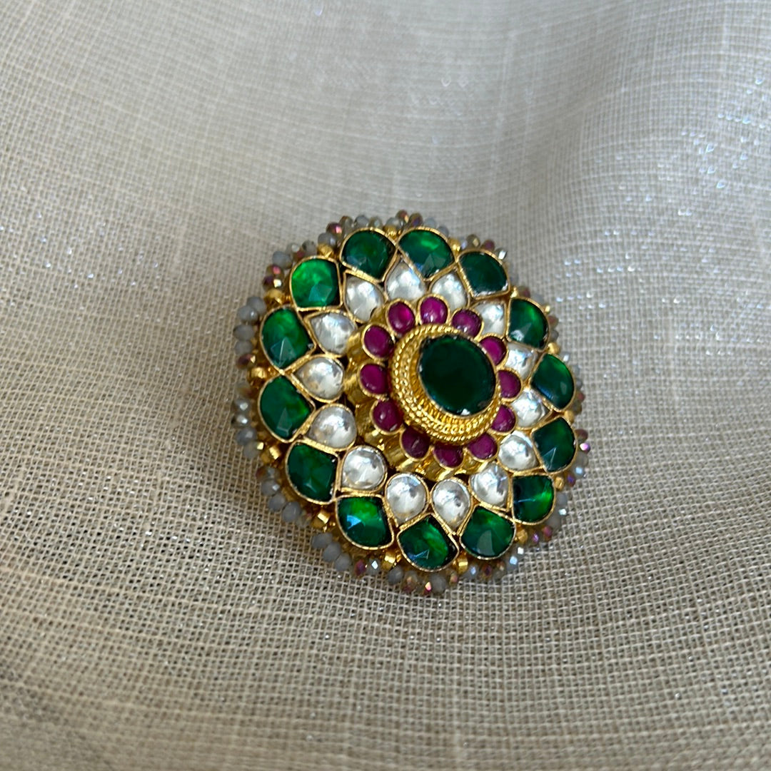 EMERALD KUNDAN STATEMENT RING