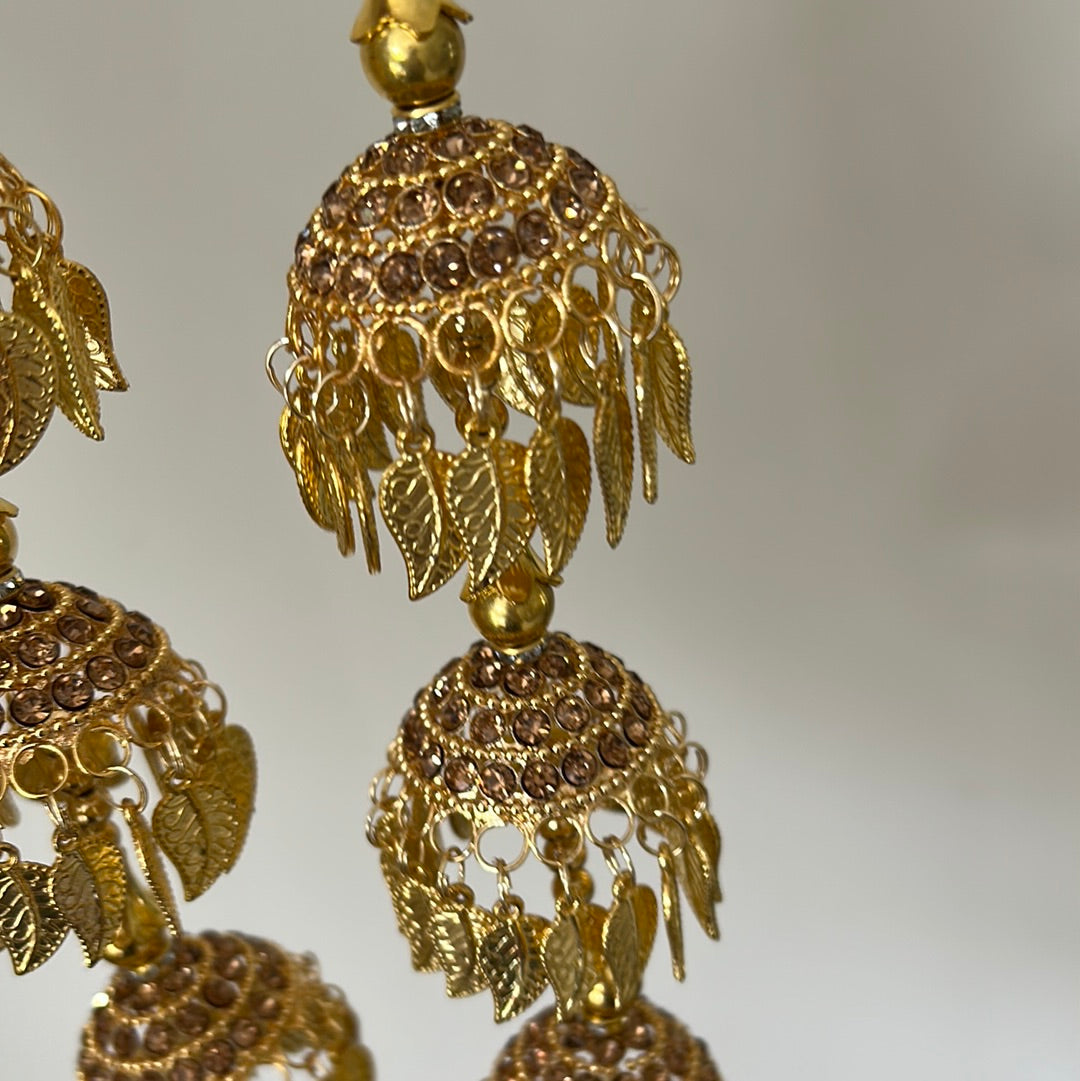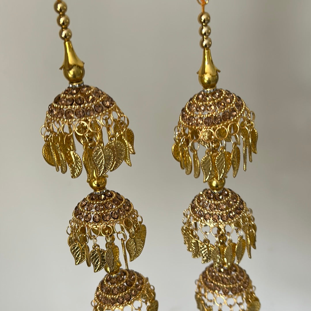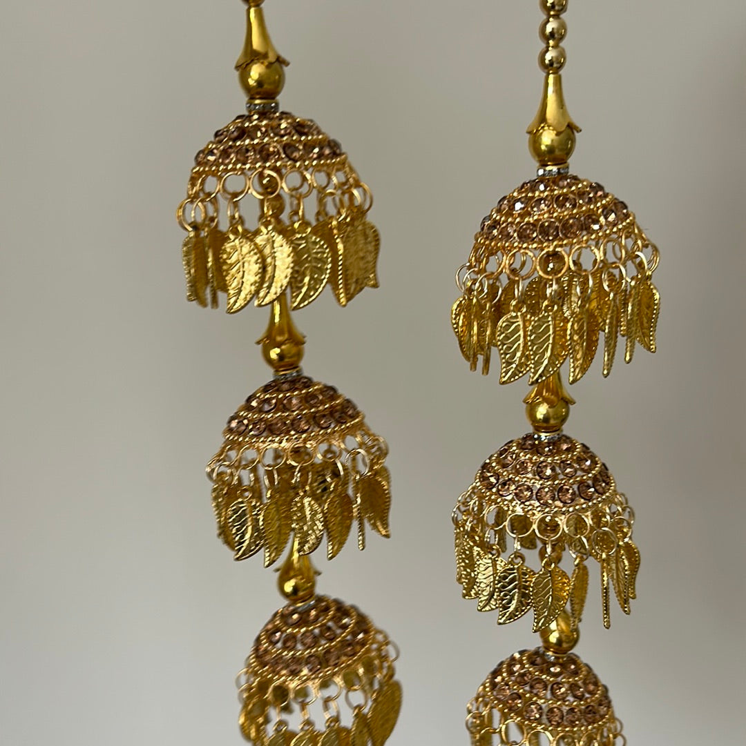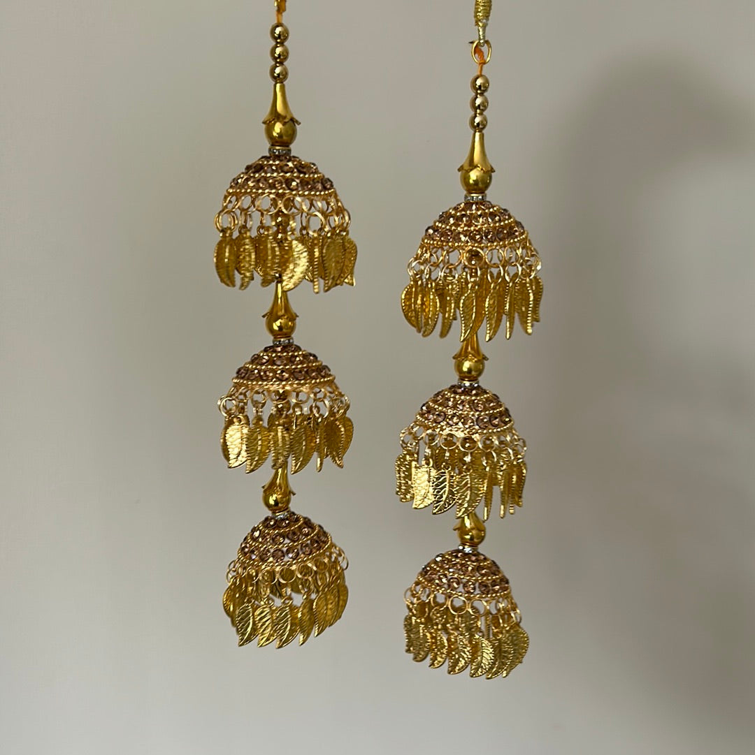 Pair of striking kalire in all gold and pippal patti details. Very lightweight with a dainty design.