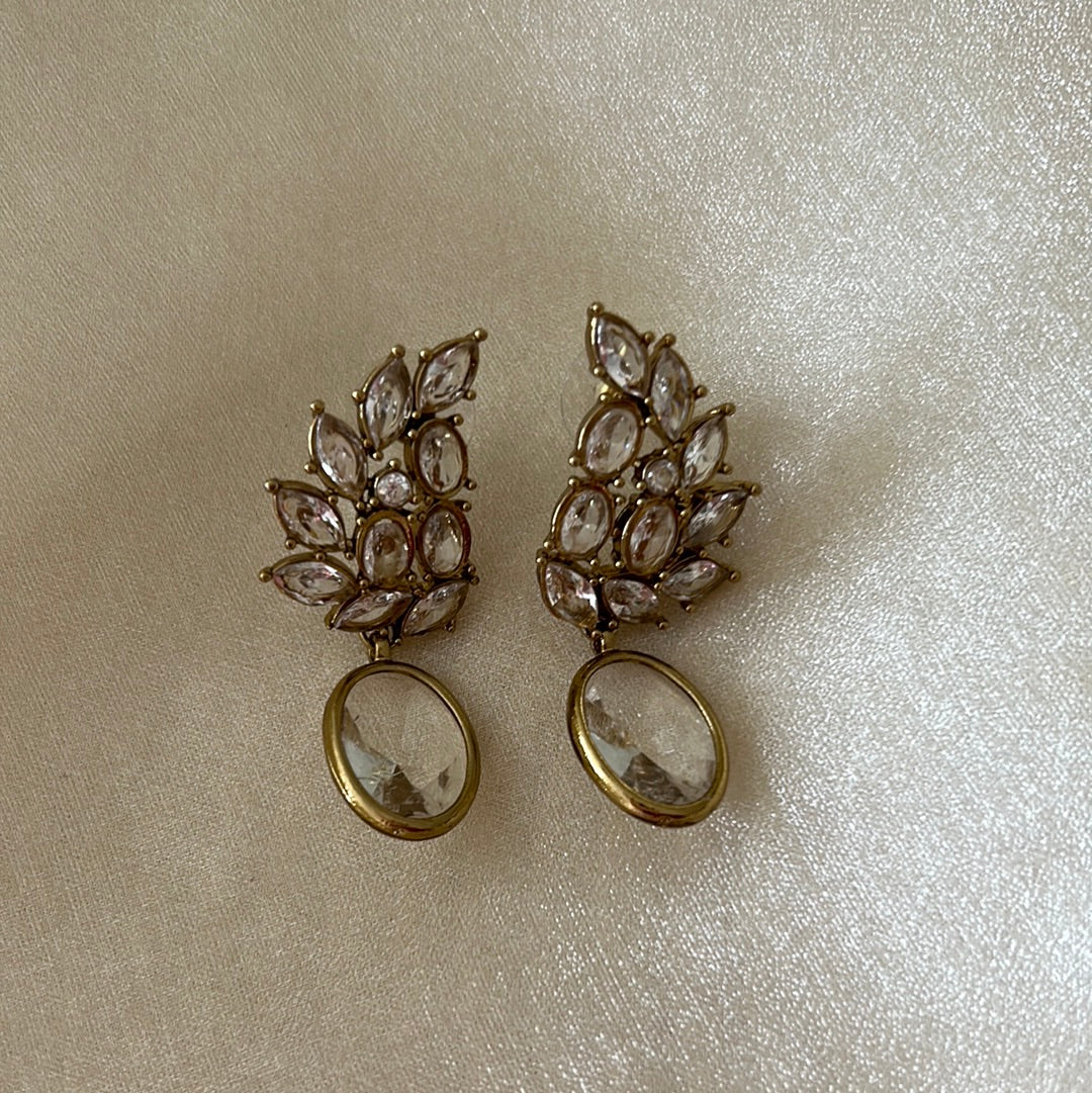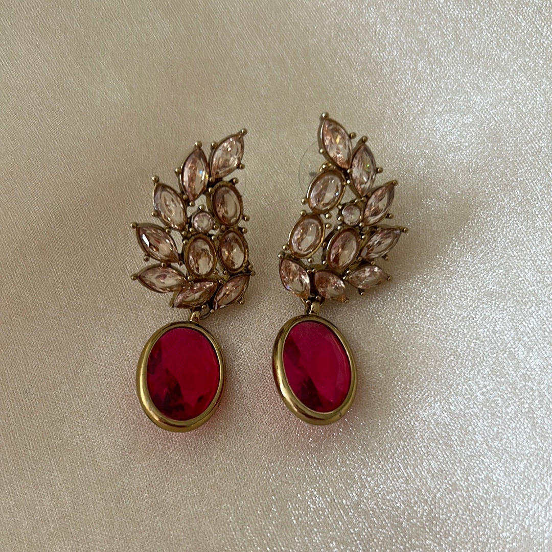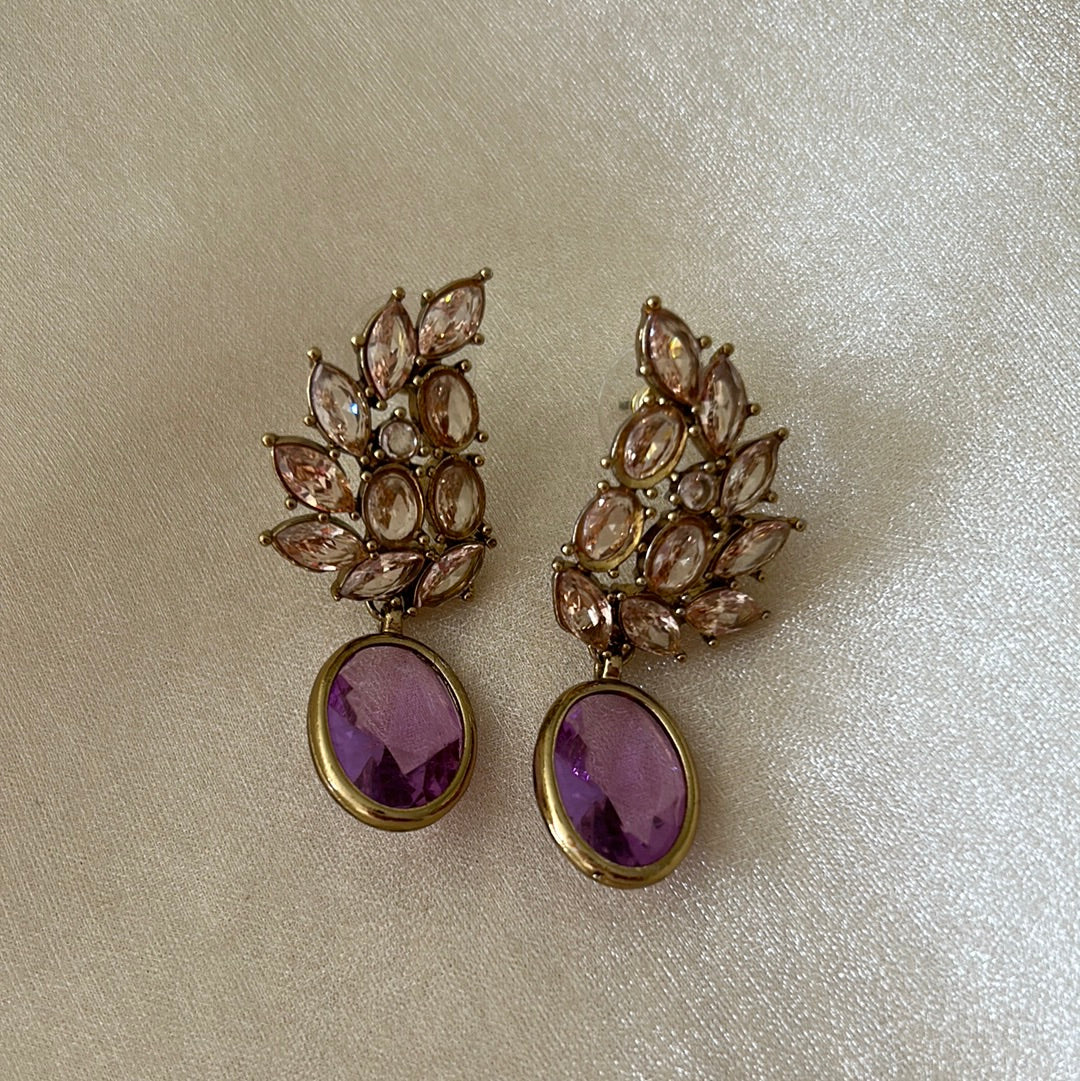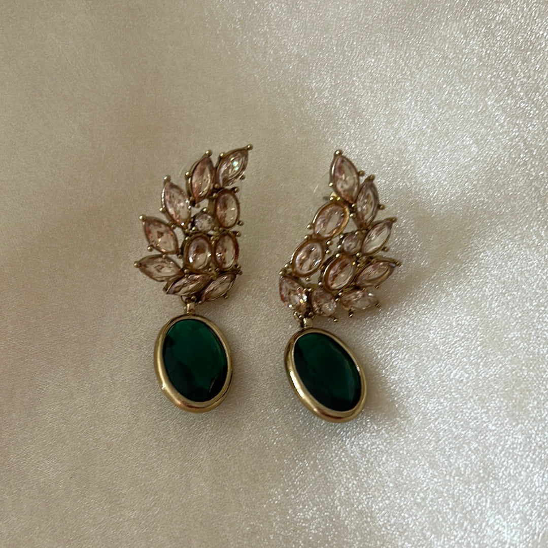 beautiful golden stone encrusted stud earrings with a coloured stone.