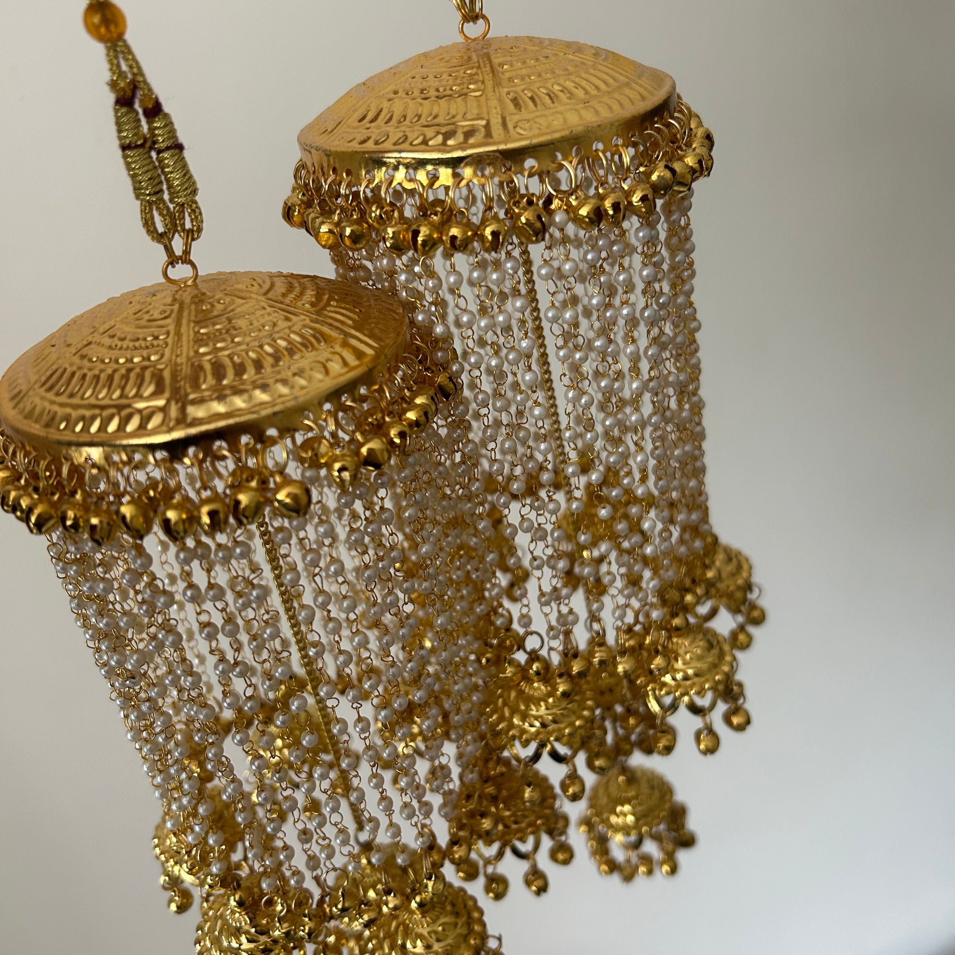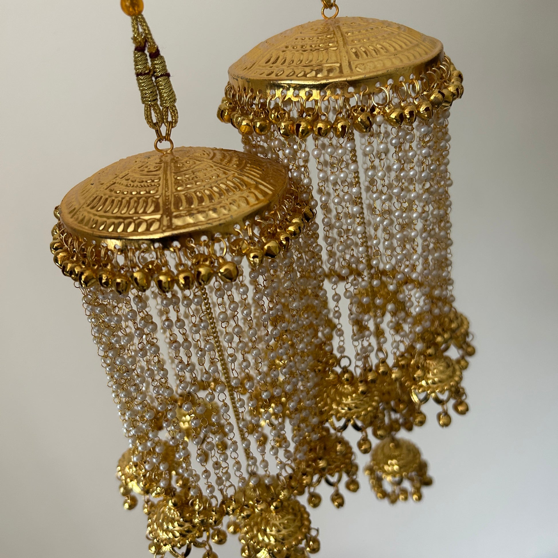 Gold plated traditional style kalire with pearl string detailing.