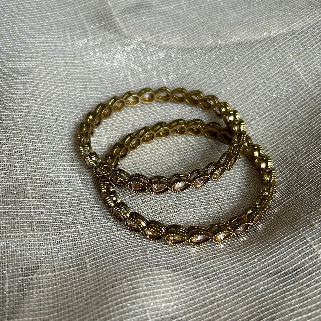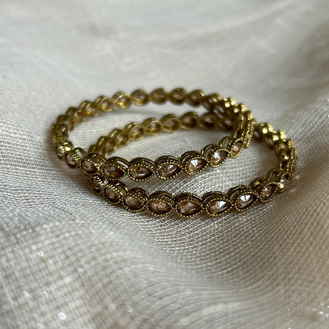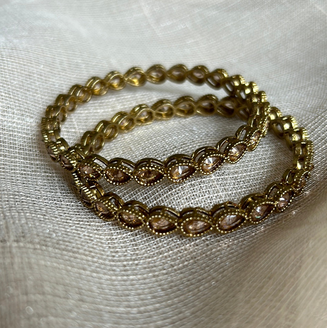 Pair of polki stone bangles in teardrop or oval shape design. Great for stacking or wearing alone.