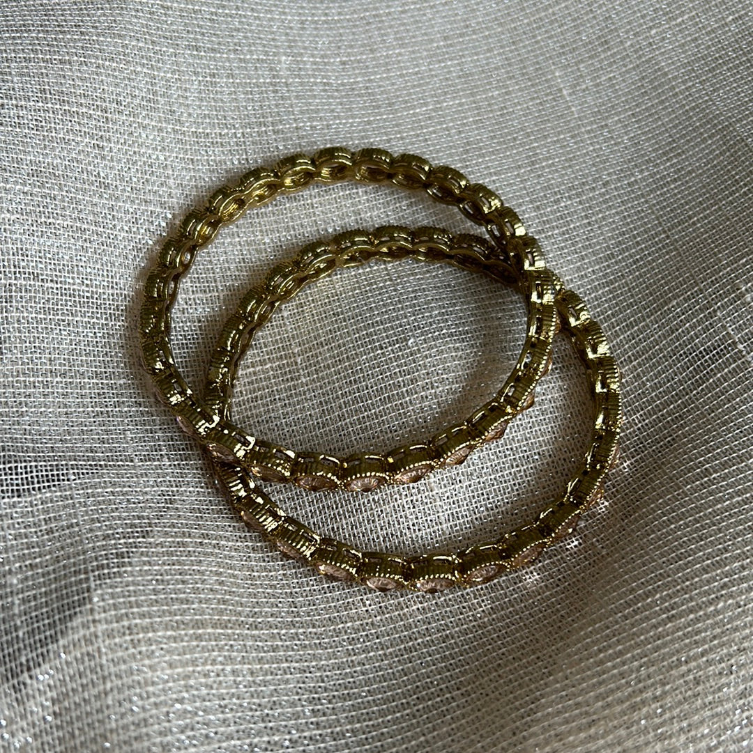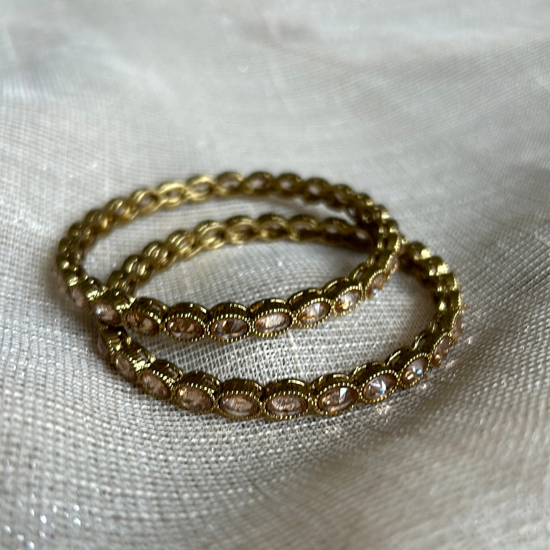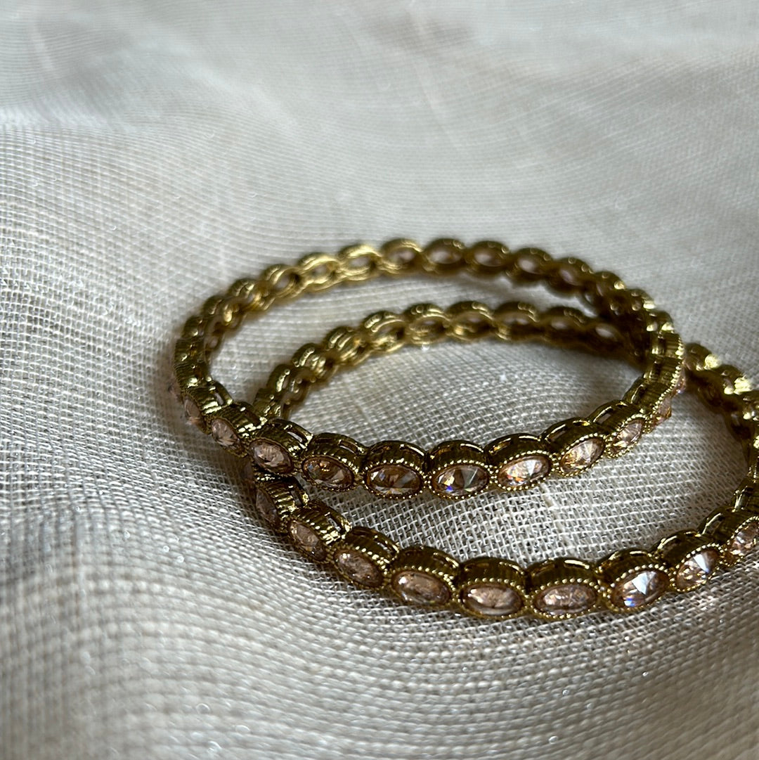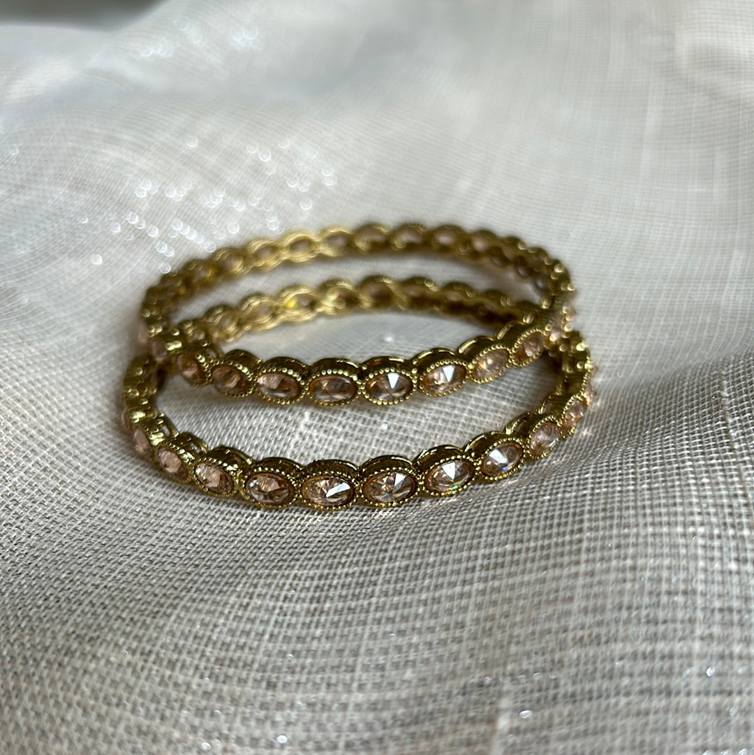 Pair of polki stone bangles in teardrop or oval shape design. Great for stacking or wearing alone.