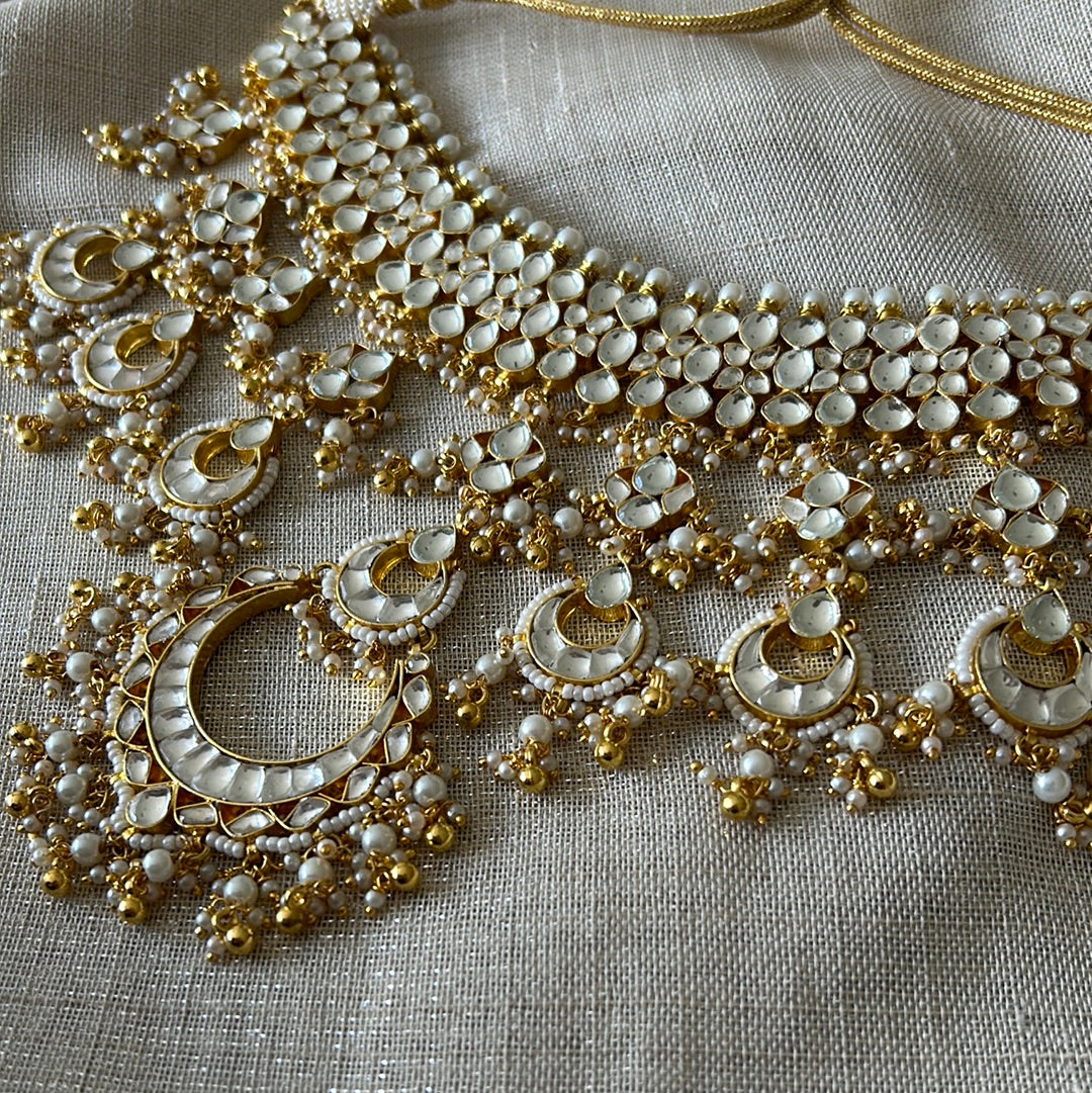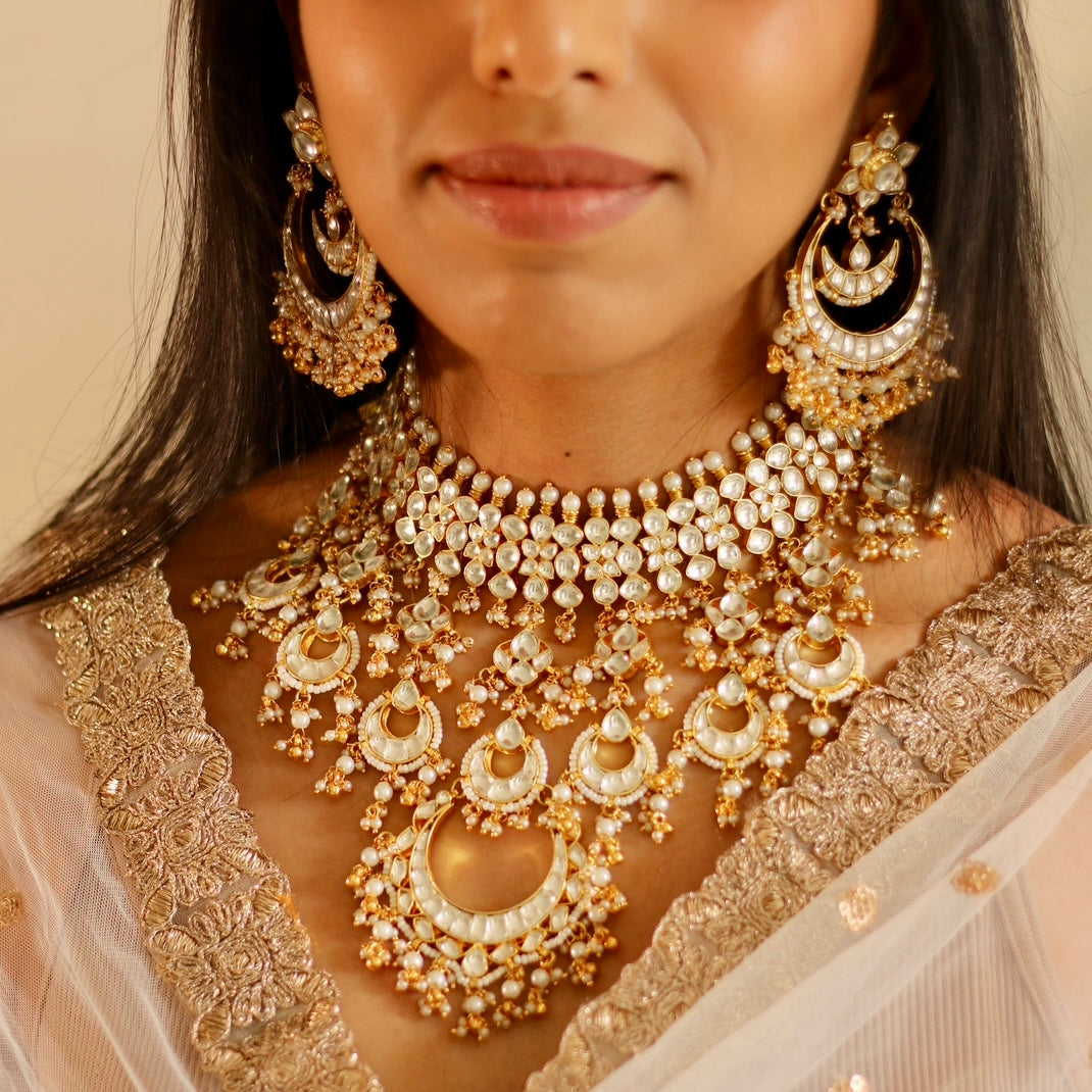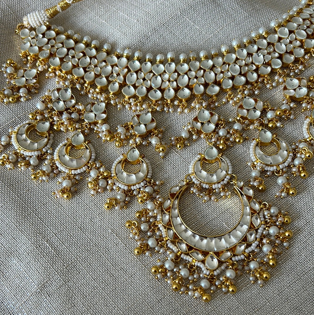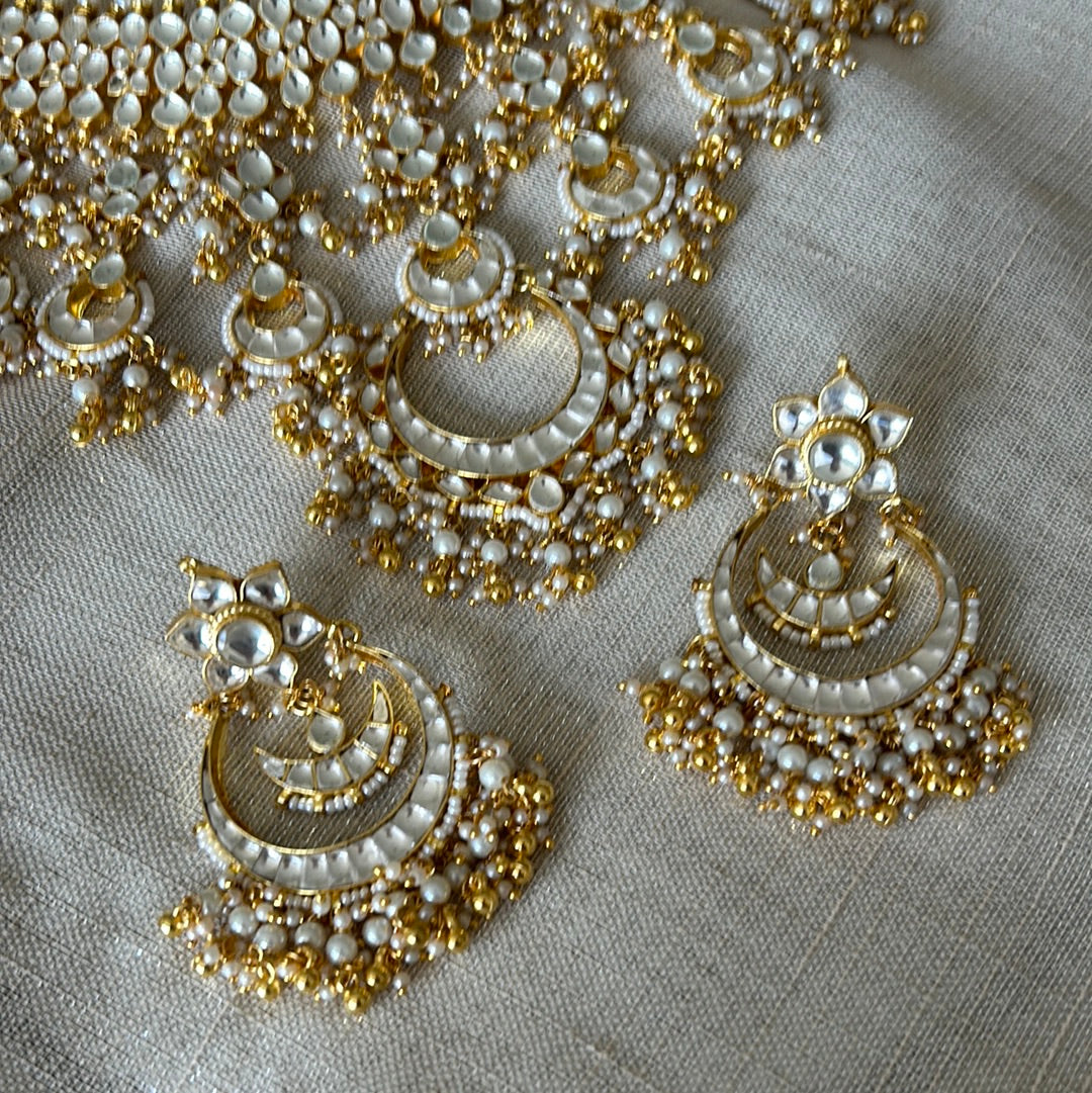 Experience the true essence of luxury with our ZOYA KUNDAN SET. Crafted with high quality Paachi Kundan stones and delicate pearl details, it's a showstopper at any event. Ideal as a bridal style or party piece. Beautiful chandbali earrings complete the look. Matching tikka available at additional cost.