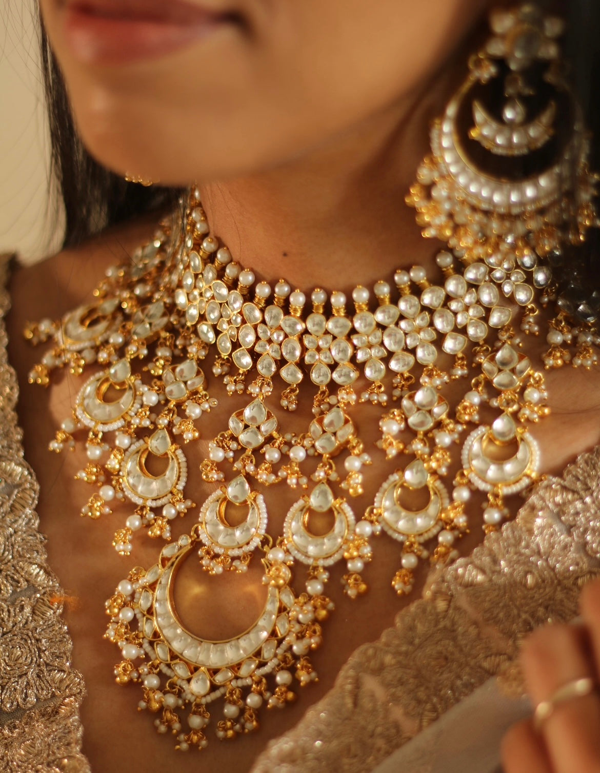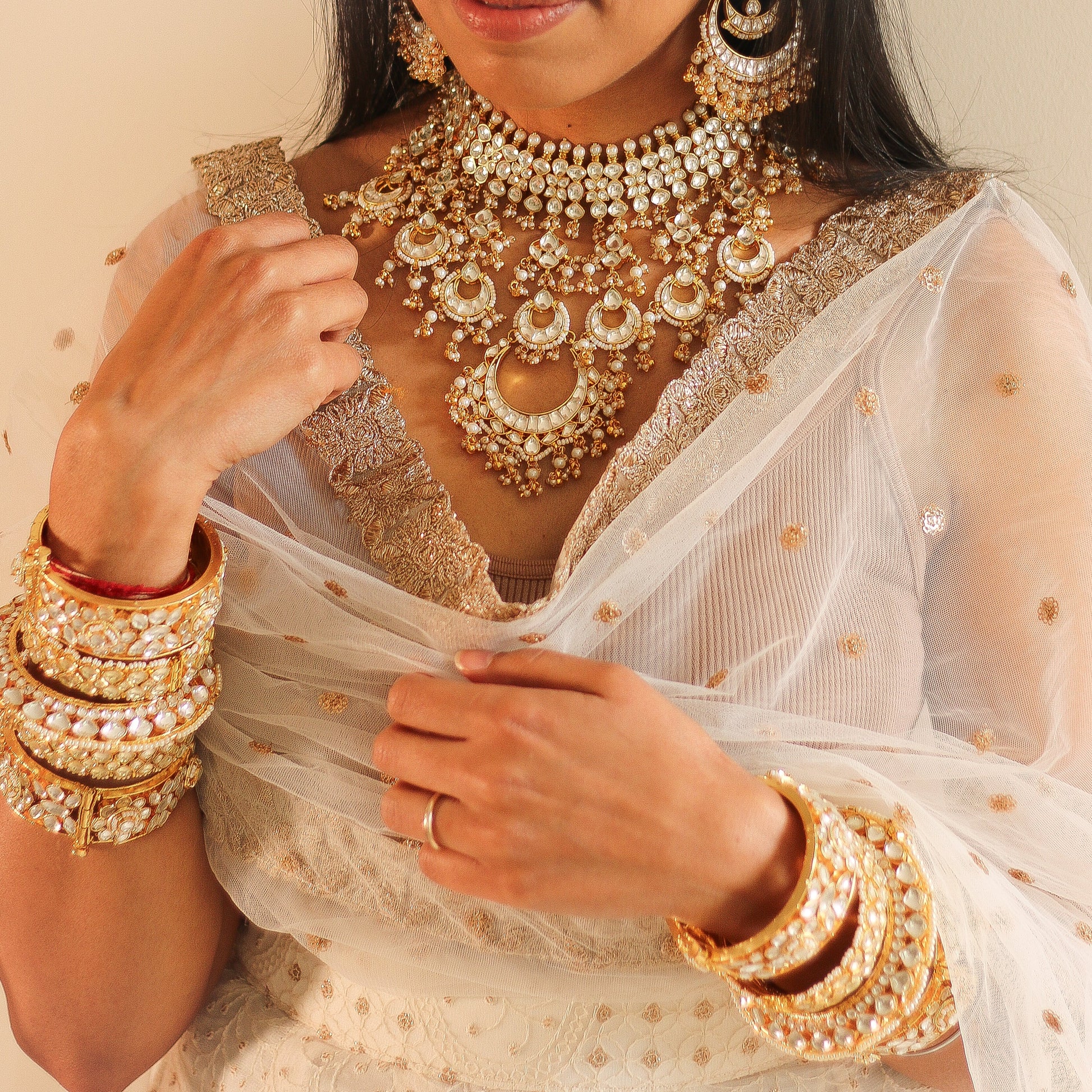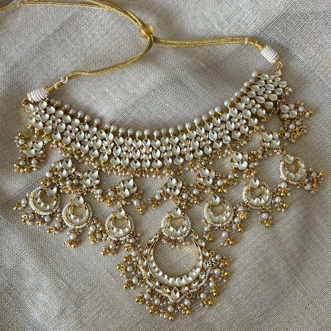 Experience the true essence of luxury with our ZOYA KUNDAN SET. Crafted with high quality Paachi Kundan stones and delicate pearl details, it's a showstopper at any event. Ideal as a bridal style or party piece. Beautiful chandbali earrings complete the look. Matching tikka available at additional cost.